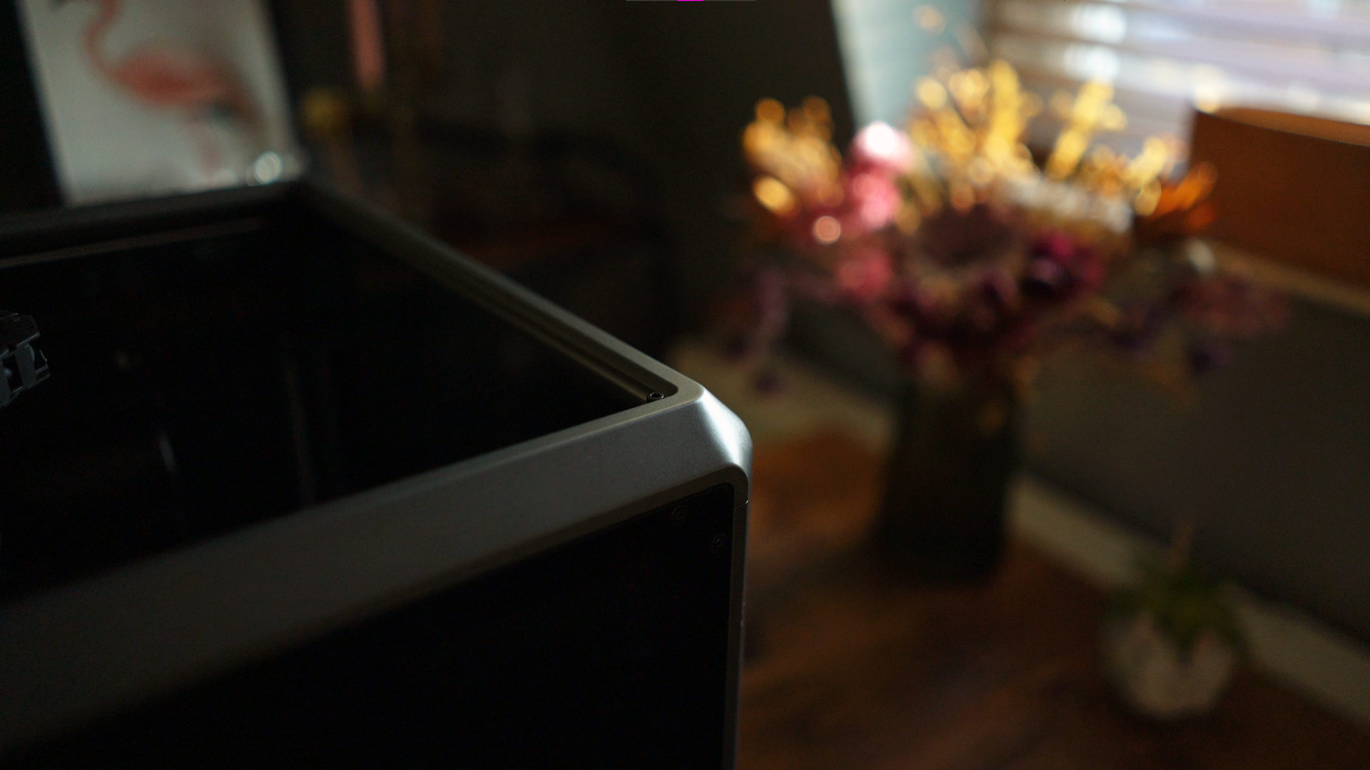 The K1 has an industrial, no-nonsense dark grey metal and glass enclosure. This design helps minimize noise, stabilise temperatures, reduce drafts that can cause warping and help vent VOCs (volatile organic compounds) away from your precious lungs.