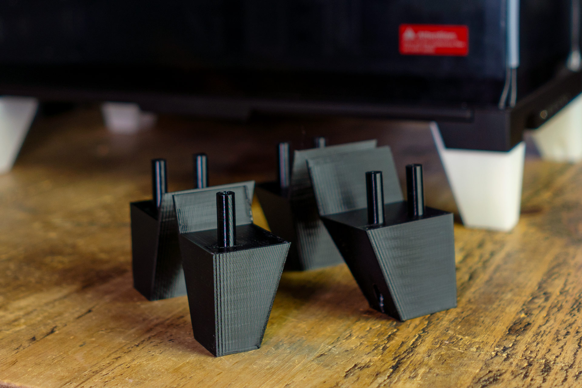 Each of the four legs included in the kit are 3D printed in PETG as standard because it offers higher temperature resistance and UV discolouration protection. PETG-CF is even stronger and more temperature resistance, making it somewhat overkill but cool. Polycarbonate is even tougher.