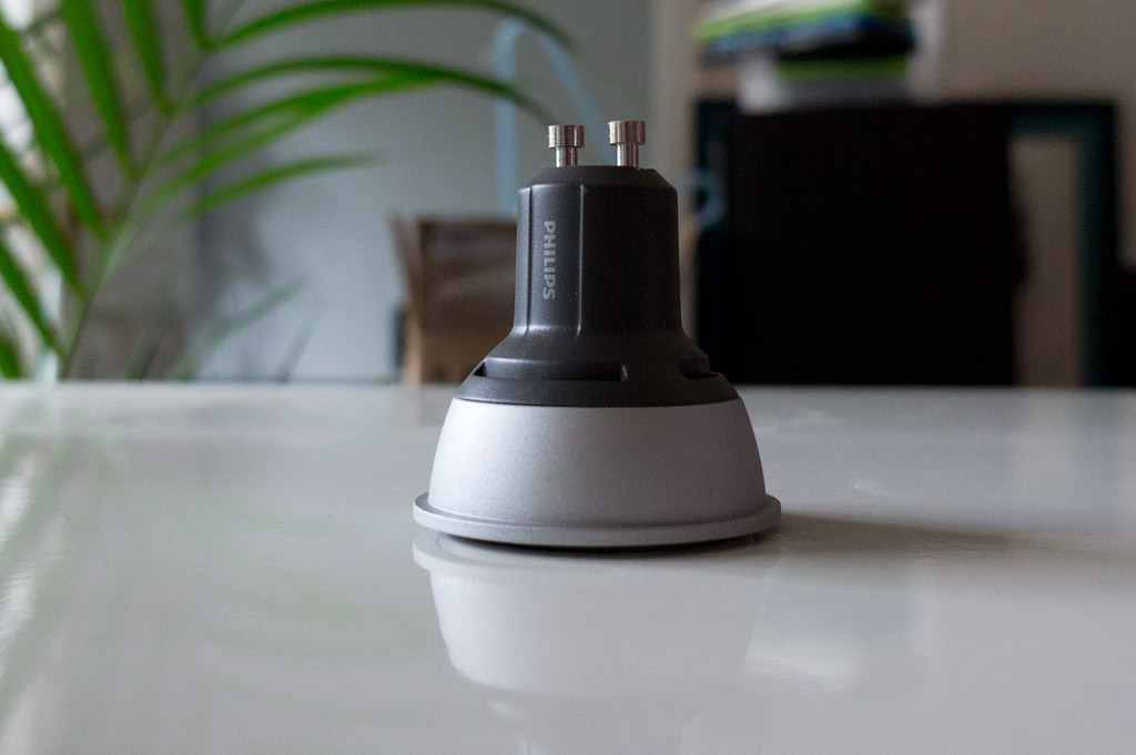 Because prices can fluctuate, let’s assume you choose to buy 10 Philips 4w Master GU10 LED bulbs. At £12 a bulb, that would set you back £120. 10 50w halogen bulbs would cost about £1.50 so that’s £15.