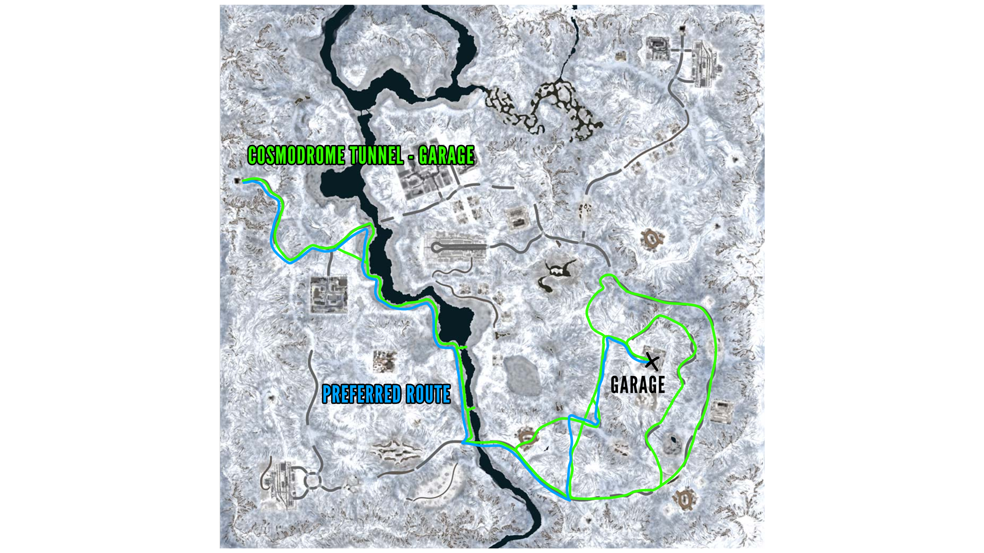 SnowRunner Chernokamensk tunnel to garage map (best routes)