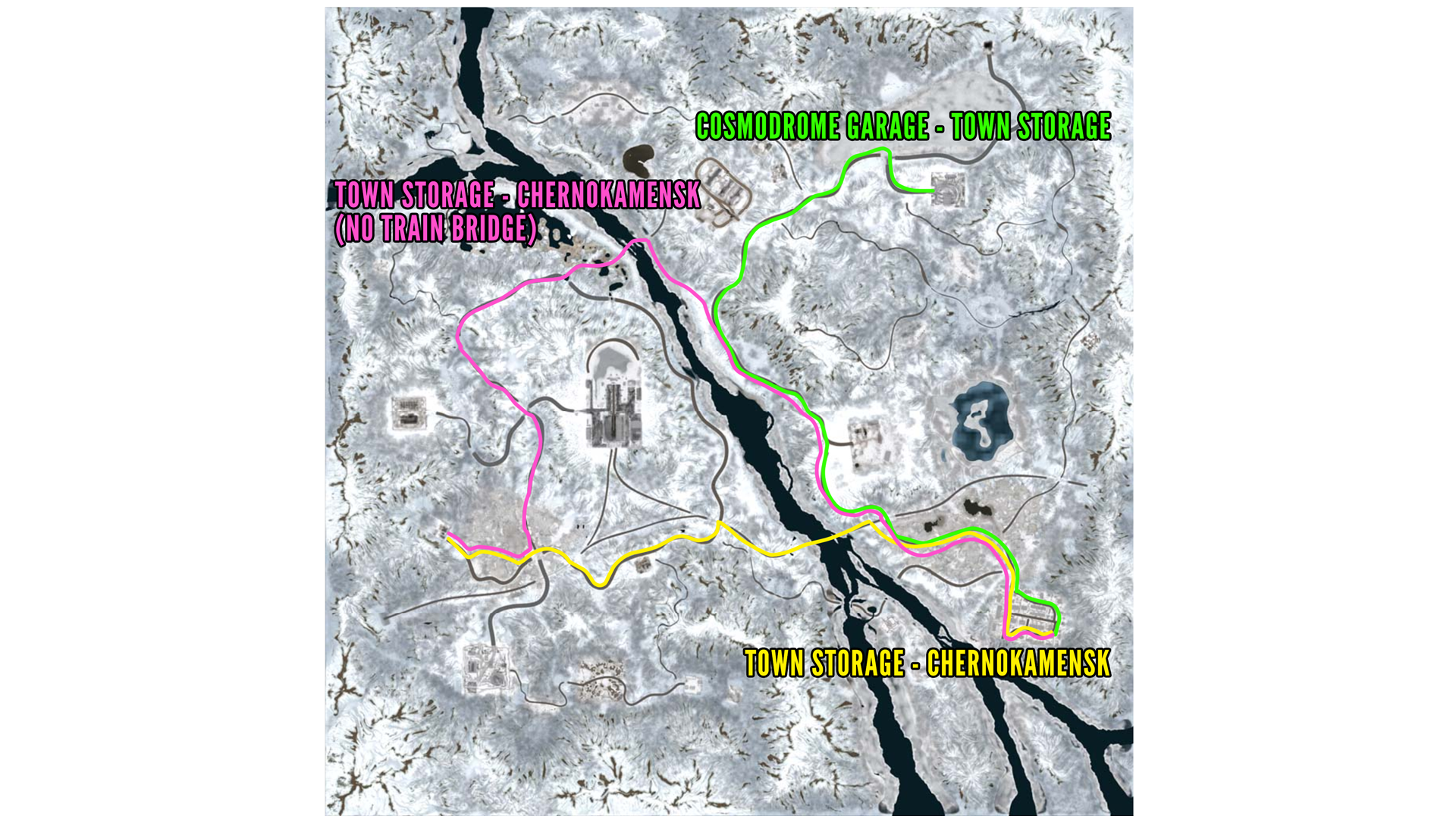 SnowRunner Cosmodrome to Chernokamensk map (best routes)