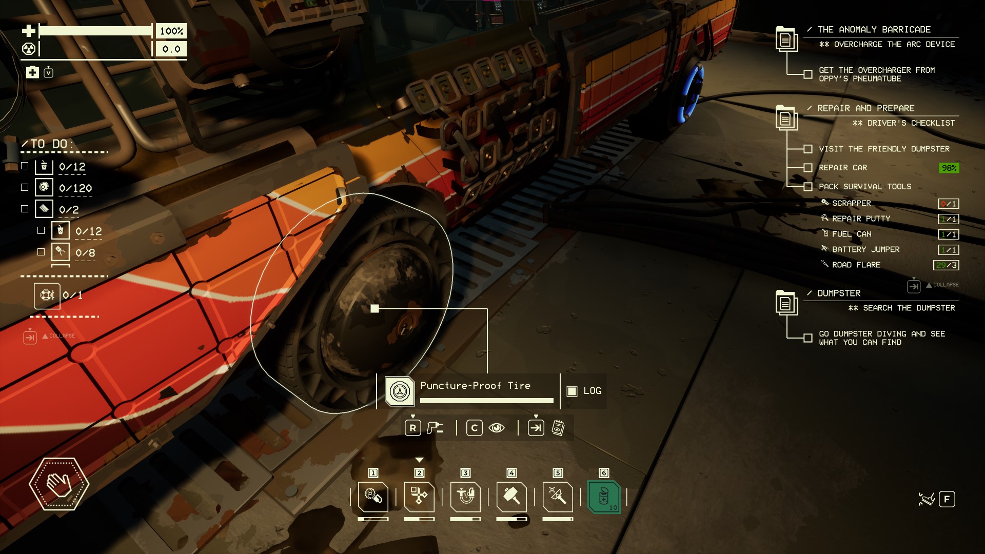 To unlock the Lazarus Device you need to scan a Remnant Ghost, which means dying then returning to your vehicle ‘corpse’ to scan what is left. You can use this technique to retrieve lost items from the trunk and maybe even car parts.