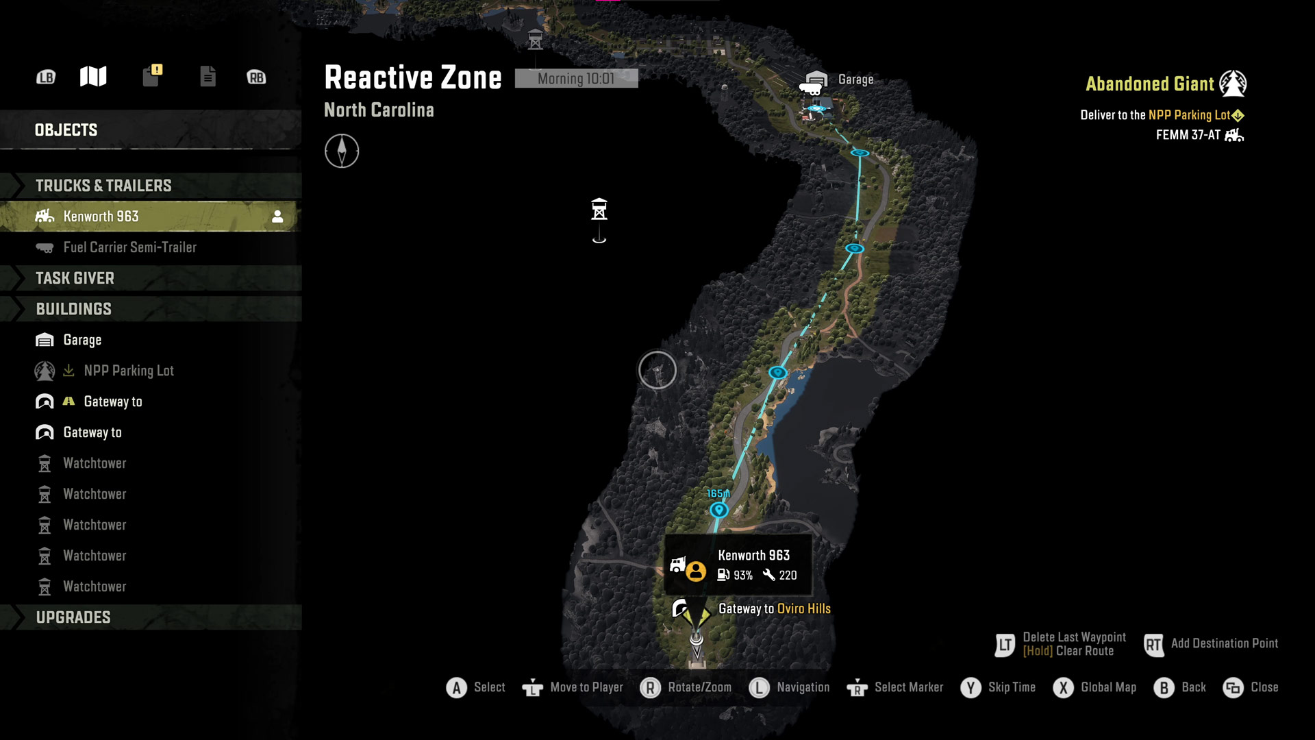 Winch the FEMM 37-AT into the Reactive Zone. Then instead of retracing your steps north, head to the west and stay relatively straight through forest and flooded trails then back to tarmac. Keep following the road west then north and soon you will see the Nuclear Power Plant (NPP) Parking Lot.