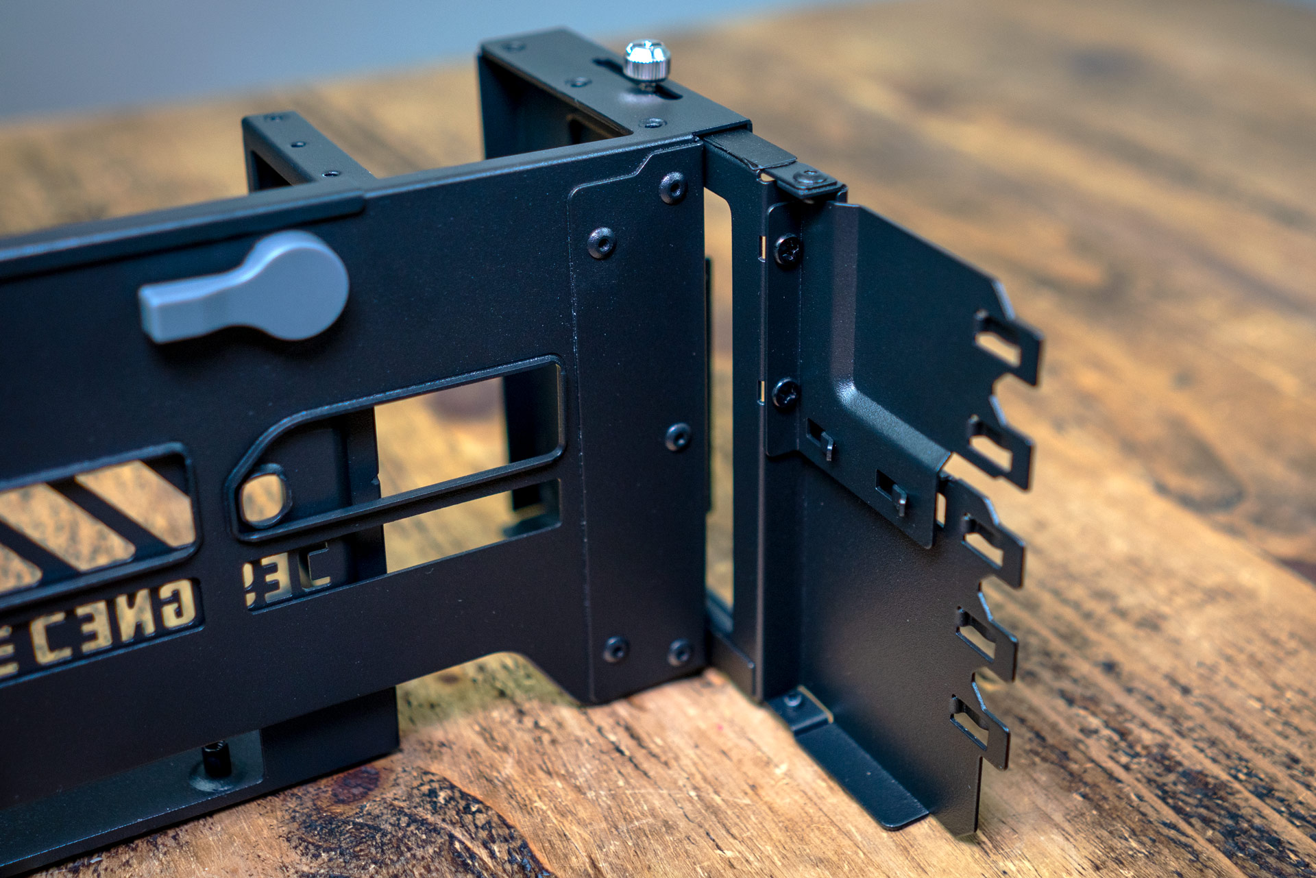 Mounting your card vertically has another benefit in the fact it does not sag. However, in my case I was unable to get the L-shaped screw prong things in. The screw would not reach. Luckily, it has a sliding mechanism you can screw tight and I have put some little plastic washers to hold it there so the GPU mount will not droop.