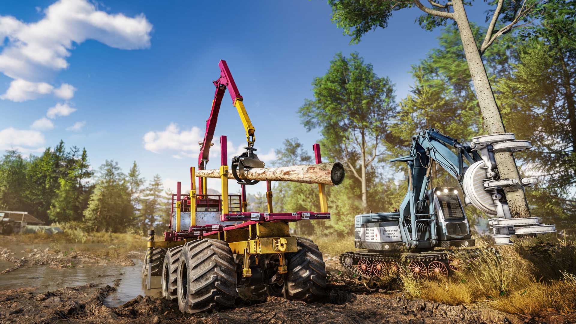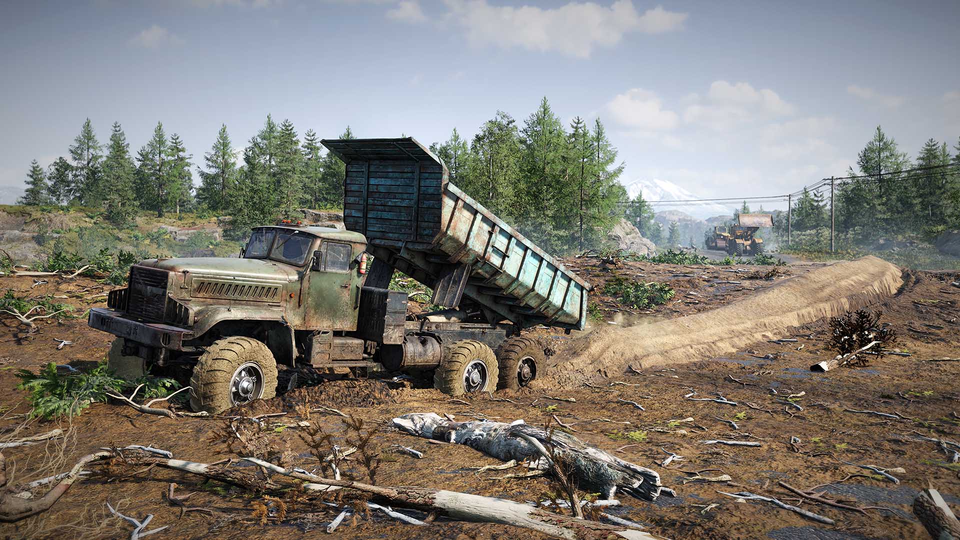 All but the largest trees, meanwhile, can be cut and processed for collecting logs. Piles of sand can be dumped to make brown sticky holes driveable. Bridges can be made from concrete, metal or wood to create epic shortcuts that save you time and misery.