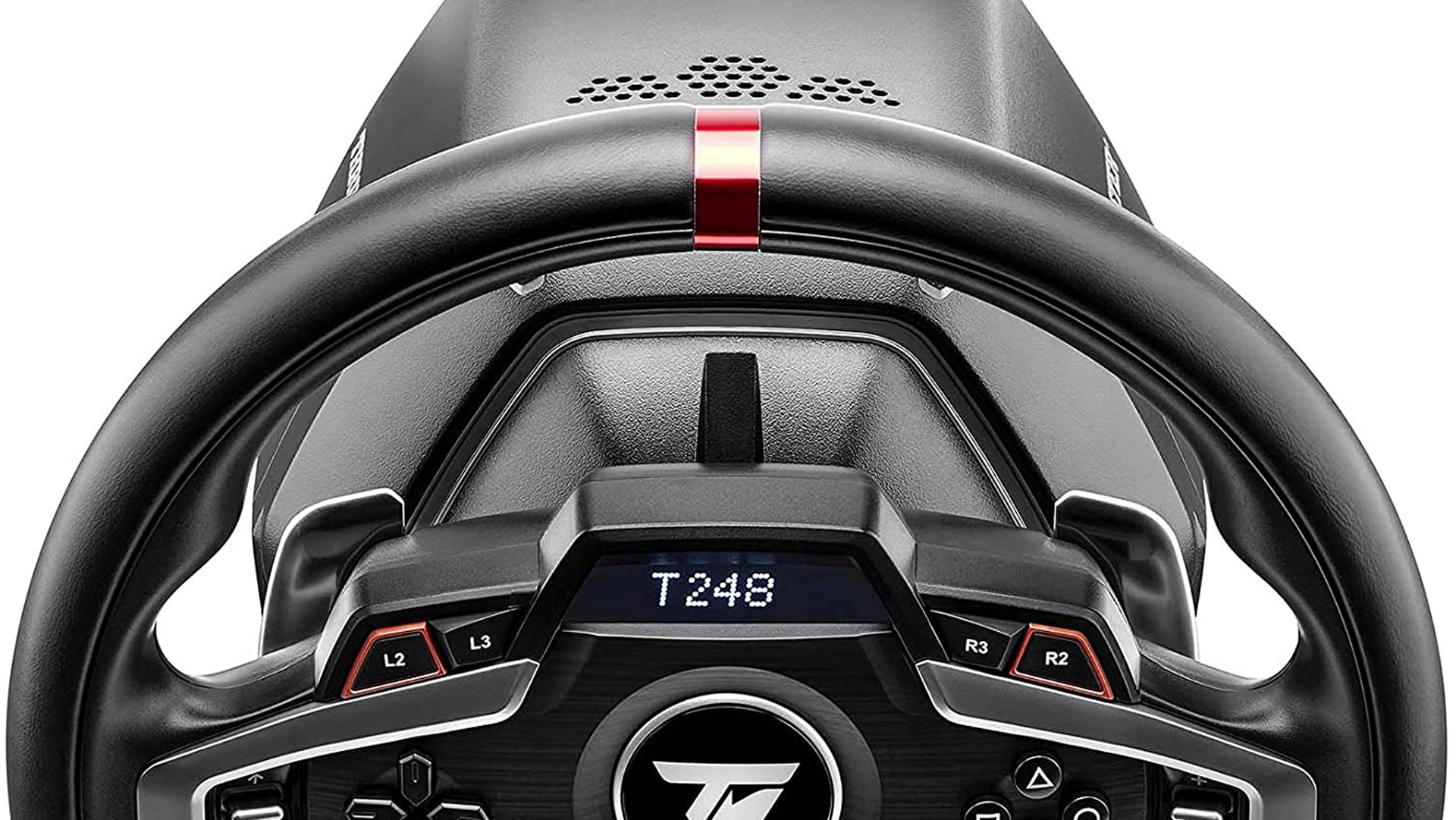 So what does the T248 offer? Well, there is a five-character ‘Race Dashboard Display’ above the logo, which can be used for wheel rotation, force feedback (FFB) type, gear ratio, speed, number of laps, driver’s best position, best time and more.
