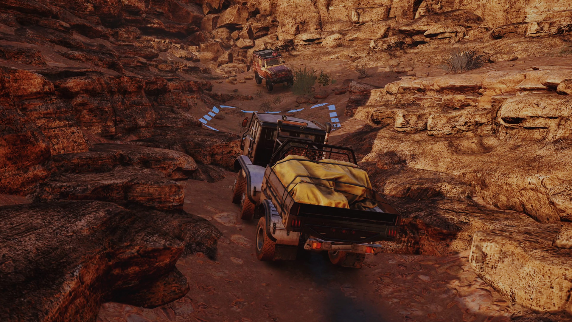 You should start from the Central Outpost and then make your way to the ‘stuck truck’ in a sizeable crater. The route is not difficult to plot, however the final hill can be gruelling so keep the towed vehicle engine off as much as possible.