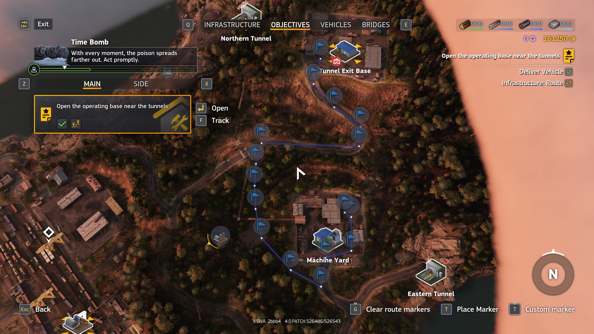 Map directions from Machine Yard to Tunnel Exit Base in Contamination RoadCraft Rebuild Expansion