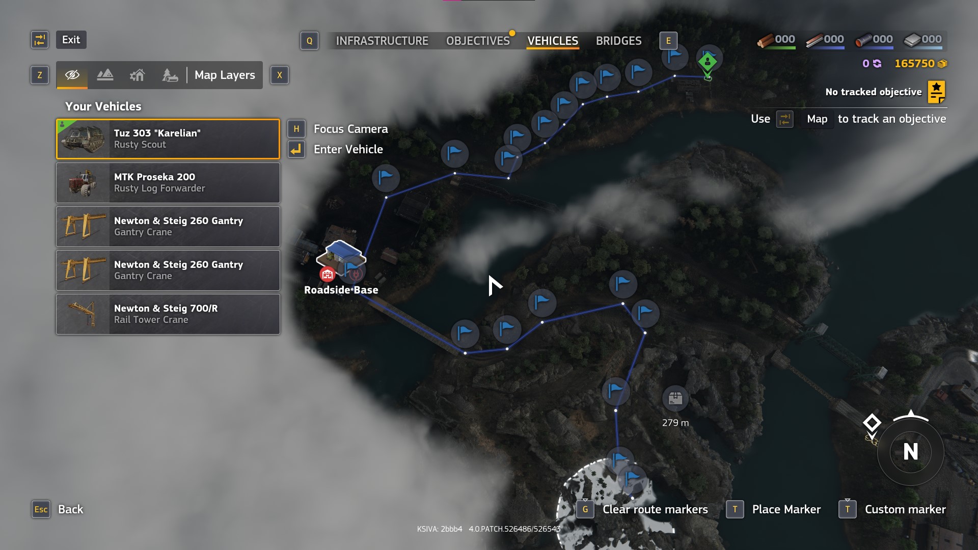 With the Tunnel Exit Base open, we can now take our preferred tree cutter and tree delivery vehicles for a W-A-L-K. Claw down a maximum of six trees near the garage to create a bridge here.