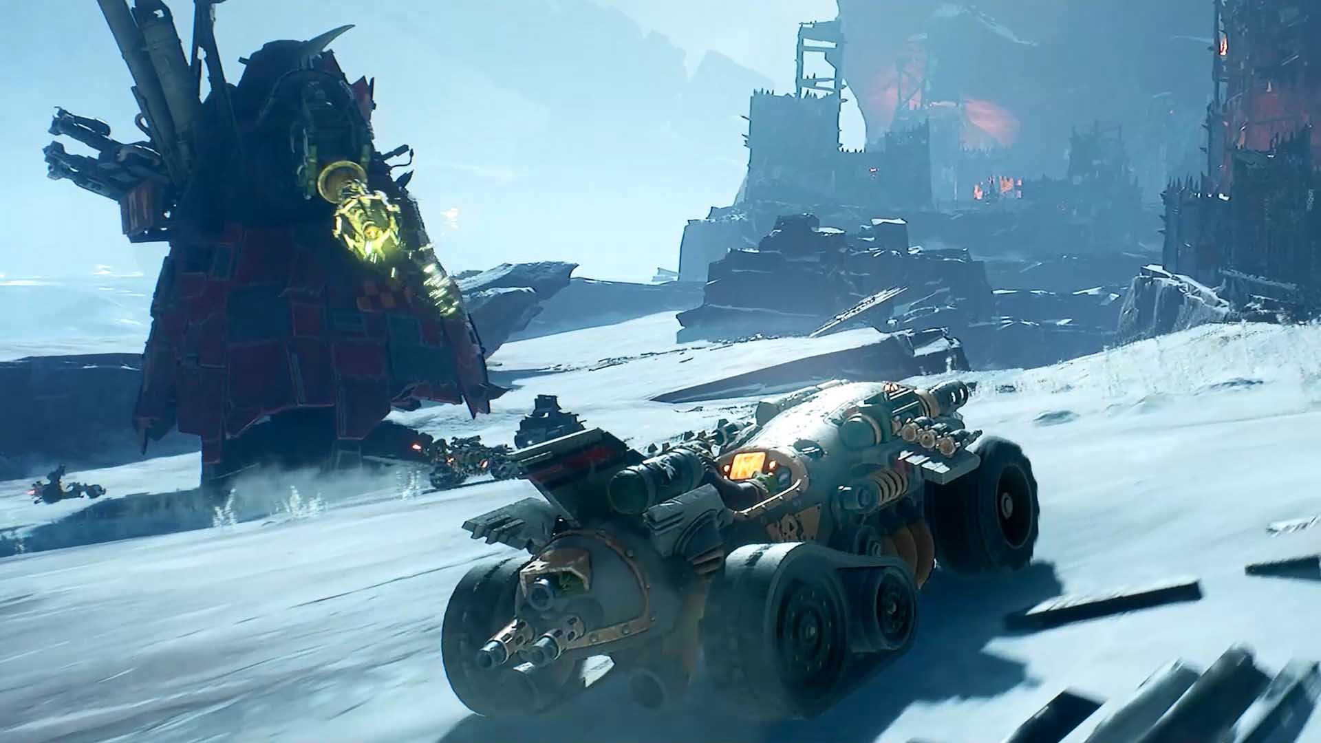In the not-so-savoury future of the 41st millennium, Orks have discovered a new religion known as speed. The result? A Mad Max-style arena racer shoot-’em-up where deranged green-skinned loons tear around in ramshackle, multi-gunned vehicles. Causing violent chaos and vehicle insurance premiums to skyrocket.