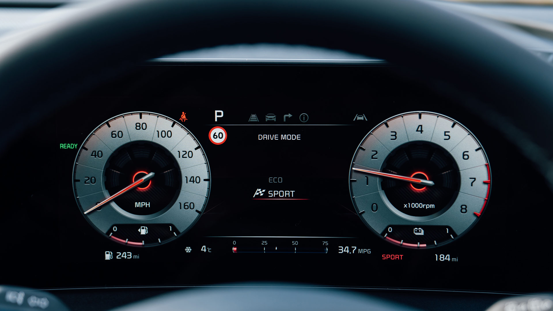 The HEV can let you drive along on electric power alone and the Sportage tries to as much as possible. Overall power is 226bhp and 350Nm of torque – a lot for a family SUV. Without much effort I achieved around 40mpg on a mix of road types.