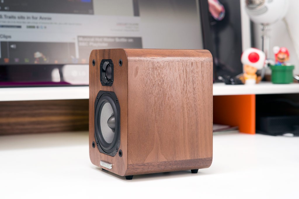 The speakers are encased in 17cm tall hand-crafted wooden enclosures, which come in a gloss black, soft white or the rich walnut (pictured). The rich walnut looks fantastic and is my pick of the bunch, but I doubt you will be disappointed with whichever you choose.